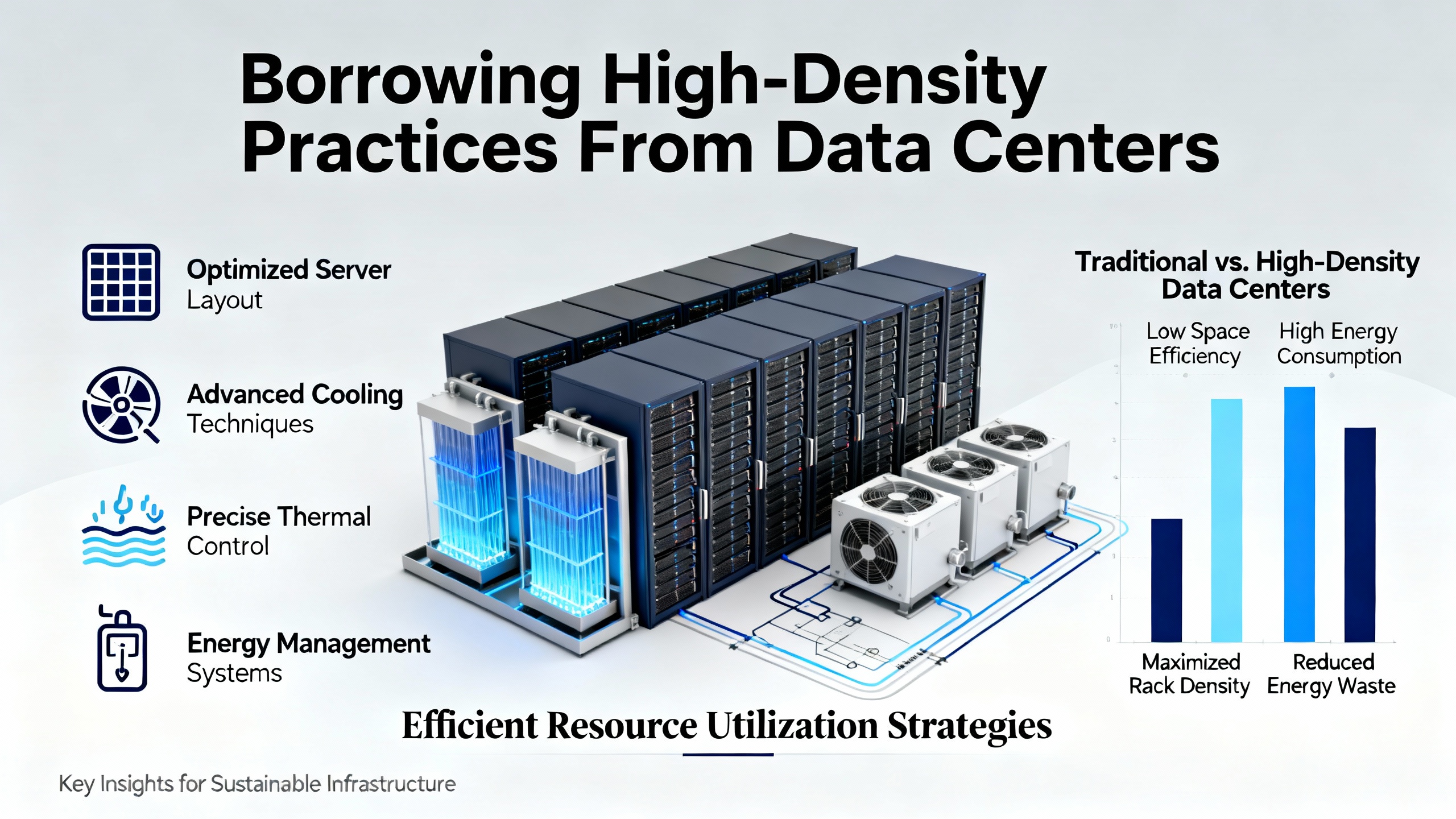 Practical guidance on PDUs focuses on selecting high-efficiency units (including transformerless designs where appropriate), designing a simplified power path with fewer transformations, distributing at higher voltages where codes and hardware allow, right-sizing PDUs so they operate in their efficient load range, and using metered or intelligent PDUs with per-outlet monitoring to track rack-level power and environmental conditions.
