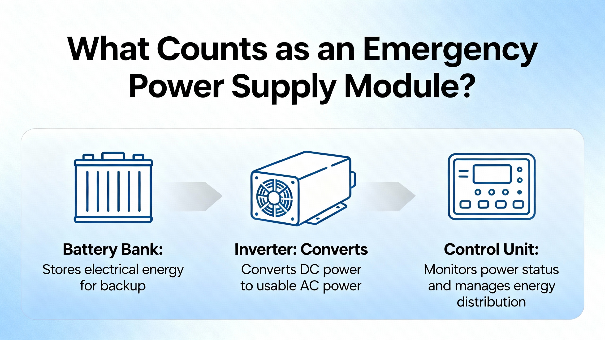 In real plants, emergency power supply modules span several categories.