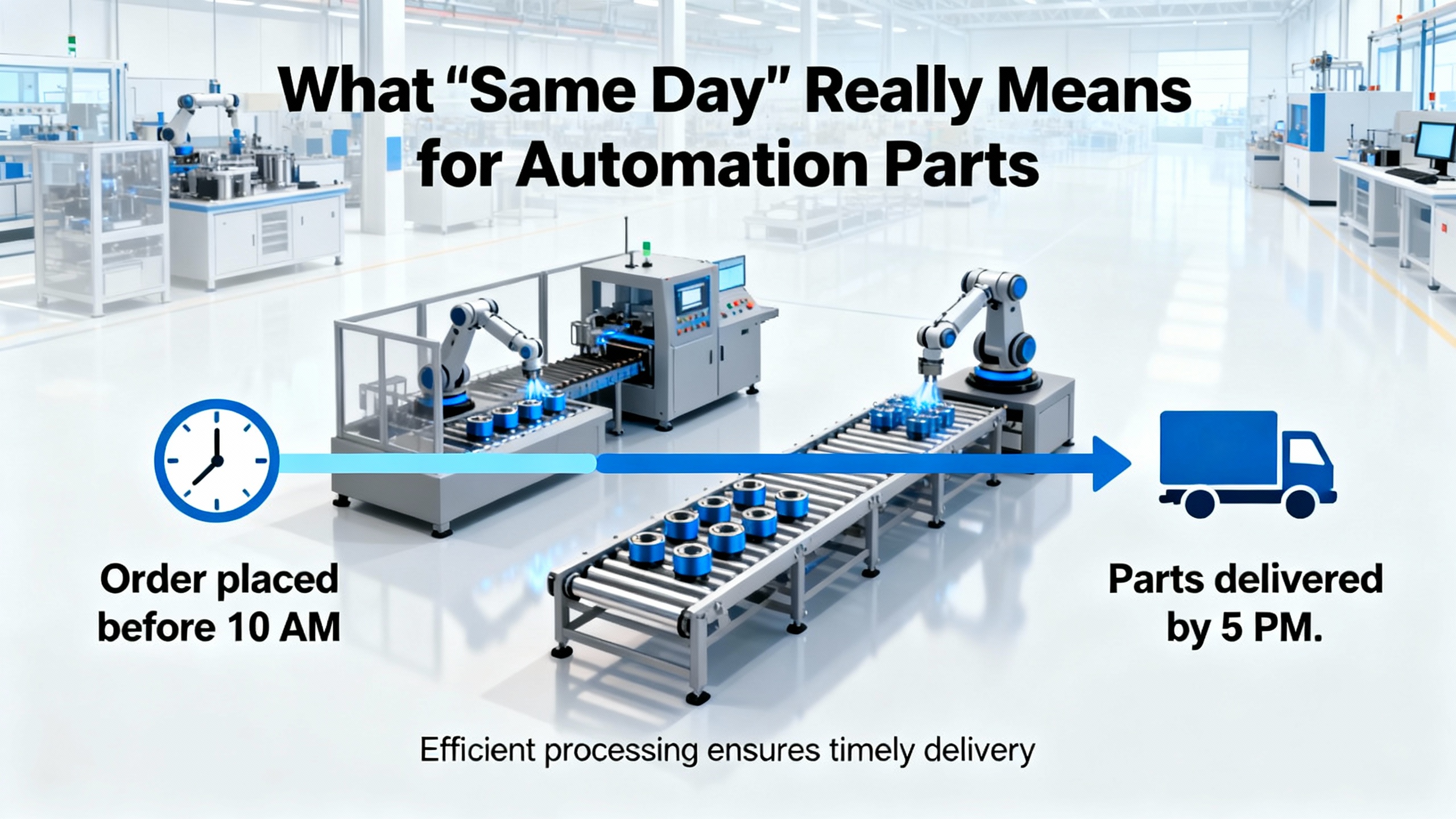 Same-day delivery for automation parts is no longer a nice-to-have. Research on manufacturing logistics shows that a single hour of unplanned downtime can cascade into missed customer deadlines, penalty clauses, and lost business, and a case highlighted by a Massachusetts same-day courier showed an estimated $50,000 in avoided losses when a failed CNC component was sourced and delivered within three hours instead of waiting the typical 48-hour lead time. When you combine that kind of impact with lean and Just-in-Time practices that intentionally keep inventory low, same-day parts are now a strategic capability, not just a convenience.
