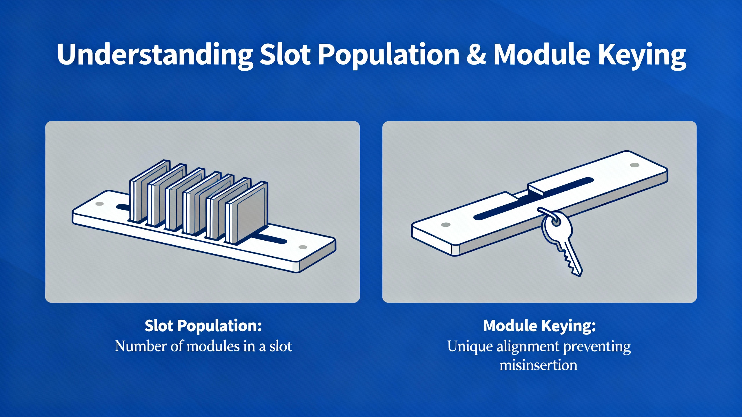| Slot keying | Mechanical keying so only the correct module types can be inserted into each slot |