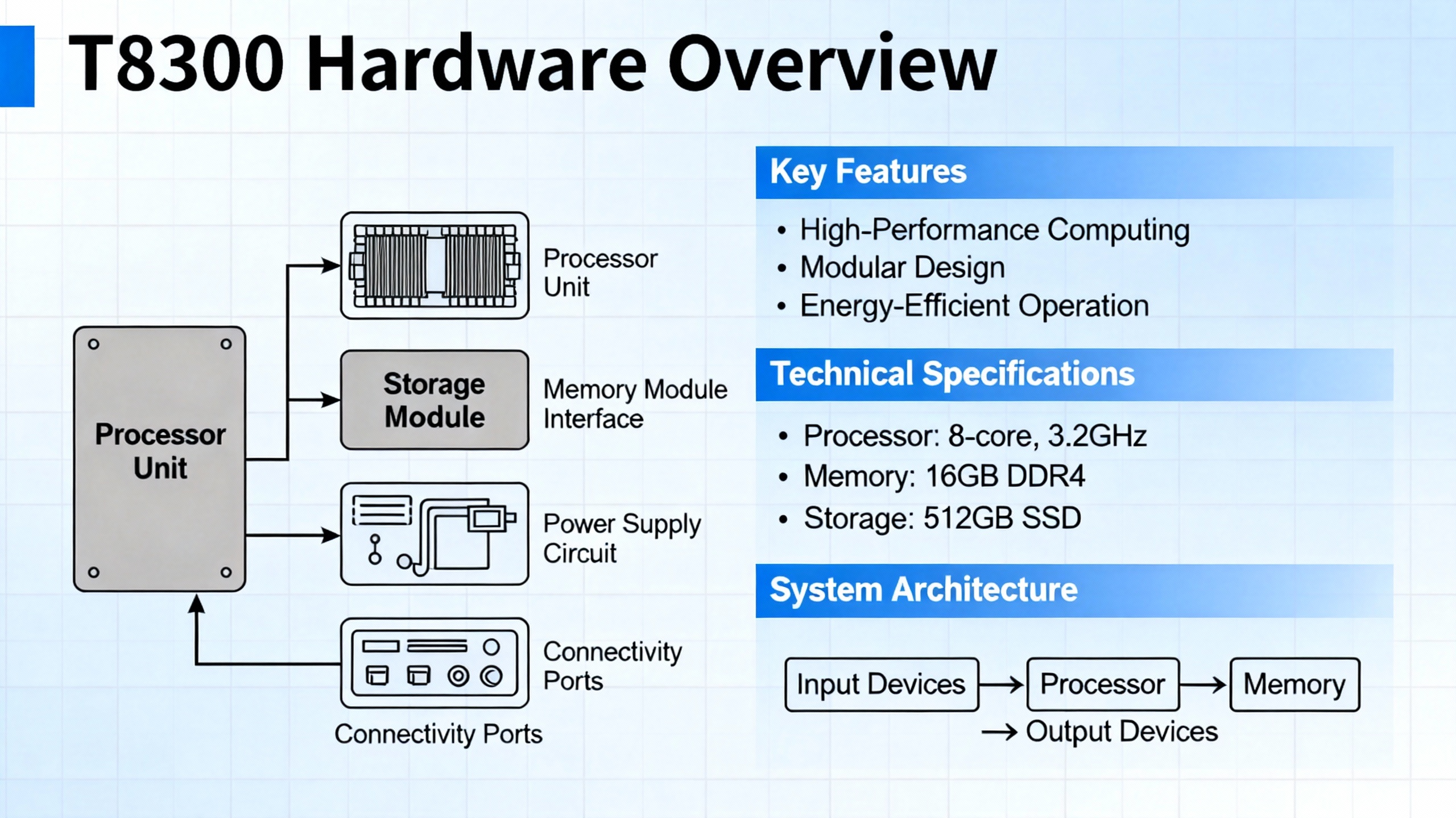 The following table consolidates the most configuration‑relevant aspects of the T8300 expander chassis for day‑to‑day use. It is not a substitute for the official manual, but it helps as a mental checklist.